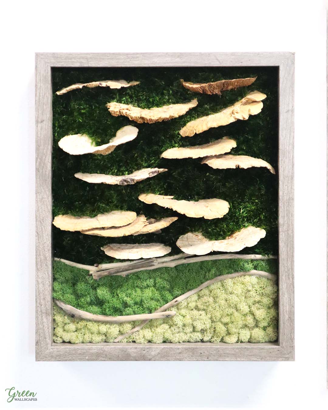 Bring the calming beauty of the forest into your home with this handcrafted moss and mushroom art piece. Designed to evoke the peaceful feeling of walking through nature, this unique wall sculpture features preserved moss, natural driftwood accents, and hand-selected dried mushrooms arranged in a soothing, organic composition.
